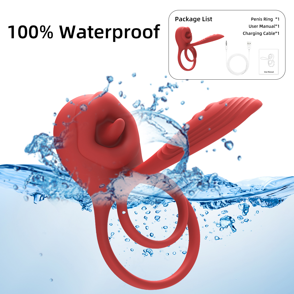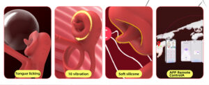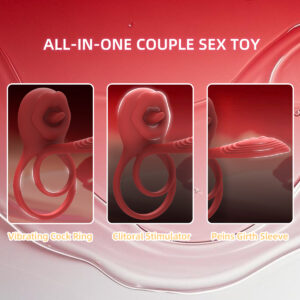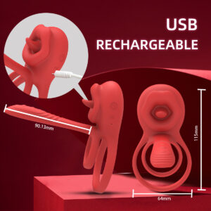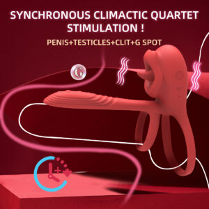 双环舌舔式震动设计可同时刺激阴茎、睾丸、阴蒂和G点,带来多重感官愉悦体验。